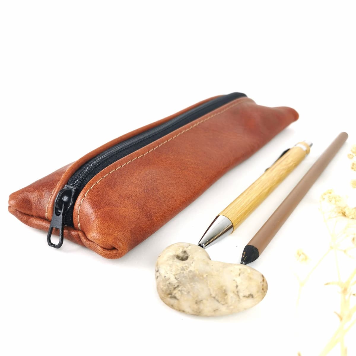 Das nachhaltig in Deutschland hergestellte Leder verleiht dem Stiftemäppchen eine robuste Optik und wundervolle Haptik.